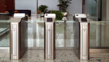 Распашной турникет – это физический барьер, имеющий створки, которые вращаются на вертикальных осях, механически или при помощи электромотора.